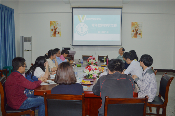会议由李秋实老师主持。各参赛选手采取多媒体课件形式,结合目前教授课程的内容,进行了20分钟的现场授课。张义雄授课内容是刑事诉讼法课程中的“刑事起诉”;李秋实讲授内容是经济法课程中的“破产法”;陈琳准备的题目是法与社会学课程中的“法律与社会控制”;林媛的竞赛内容是合同法中的“合同撤销”。比赛中,青年教师们展示了饱满的教学热情、生动的教学言语和灵活变化的教学方式。