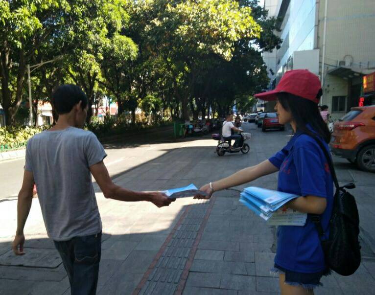 此次 “关爱留守儿童”普法活动,主要内容是关爱留守儿童和未成年人法律的小知识。实践队分为四个小组,在街上进行了普法宣传单的发放,共计发放1000张宣传单。此外,还进行“关爱留守儿童”横幅的签名活动。