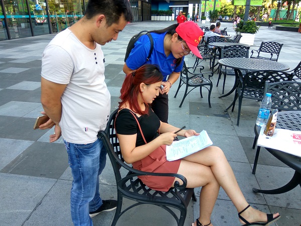实践队员按照安排,有序地向来往游客介绍来意,向游客发放问卷调查,并耐心回答游客提问关于危险驾驶的相关问题。期间,队员们还向游客宣传学校,并发放学校招生简章。在队员们的宣传下,游客们对公众对危险驾驶的认知有所了解,对仰恩大学的认识更加深入,并对实践队的问卷调查活动表示肯定。