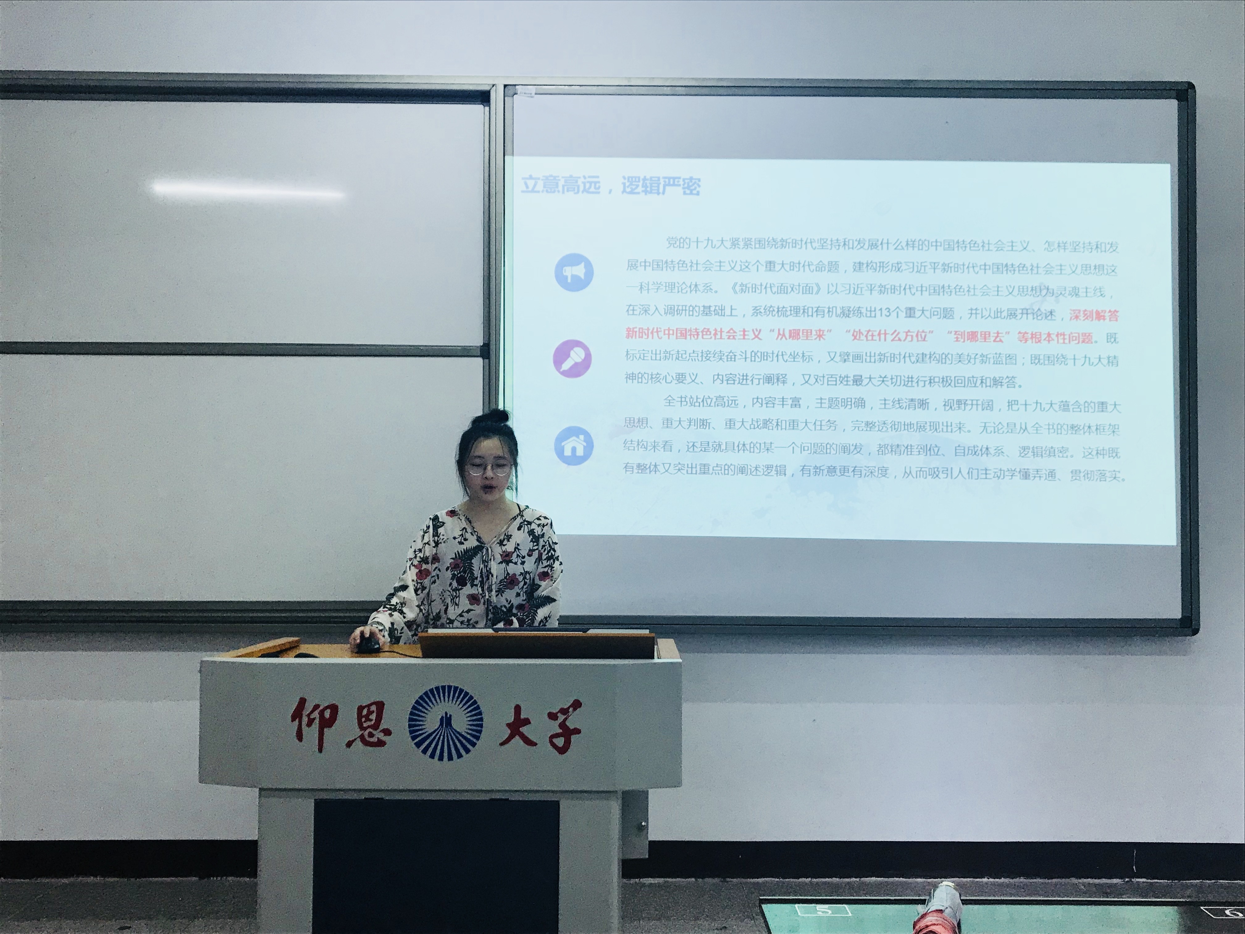 会上,支部成员一起学习《新时代面对面》的相关内容,利用PPT的模式,将该书从13个方面集中回答了干部群众在学习贯彻党的十九大精神过程中遇到的热点难点问题进行探讨。此外,林媛强调,13个话题既是热点也是重点和难点,从解读到问答,切实回应了新时代人民群众的关切,同样也是高校师生的关切。
