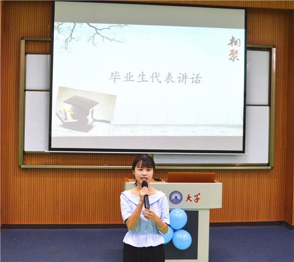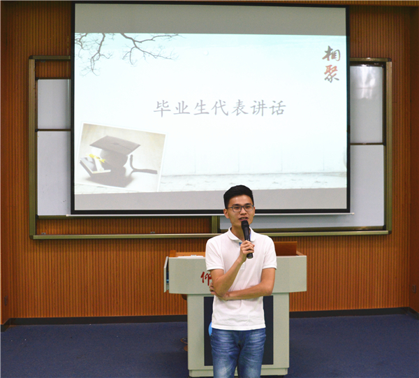 会议伊始,由王晓丽老师发言致辞,致辞表达了对所有毕业生的期望以及祝福。同时,针对毕业生相关工作的内容和要求、毕业论文答辩等事项,李秋实老师进行详细地介绍。而对于毕业生档案传递等相关事宜,黄伟斌老师也一一为毕业生们讲解。此外,两位毕业生代表在会上对自己大学四年的经历进行了总结演讲。演讲回顾了四年的仰恩生活,从一个懵懂无知的大一新生到对学校满怀感恩的历程,感恩母校,感谢师恩。在会议的最后,全体毕业生共同宣读了《宪法》节选以及誓词。
