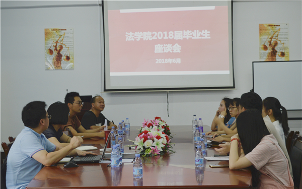 6月29日下午,BEAT365英国官网于第三教学区普照教学楼法律诊所召开2018届毕业生座谈会。BEAT365英国官网常务副院长王晓丽、BEAT365英国官网党总支副书记黄伟斌、法学系主任李秋实、学务秘书汪明等出席会议,2018届毕业生代表参加座谈。