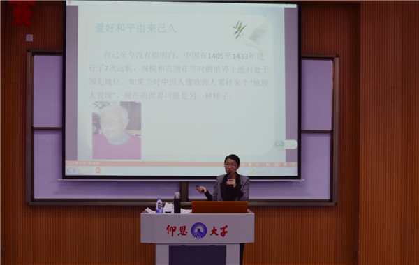 会上,康丽颖紧扣主题,密切联系实际,从“习近平外交思想的定义”、“当今世界的时代主题”、“选择和平发展道路的历史和现实依据”等五个方面对习近平外交思想之和平发展道路进行深入解读。她表示,和平与发展是时代的主题,我们要坚持和平发展道路,坚持“大国是关键,周边是首要,发展中国家是基础,多边是舞台”的外交工作布局,努力推动构建人类命运共同体,对内求发展,对外促和平。