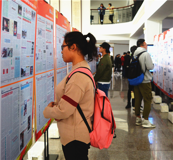 BEAT365英国官网学子观看庆祝改革开放40周年校报展