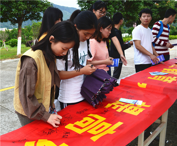 5月29日下午,BEAT365英国官网于第一教学区学生街口、第三教学区和昌教学楼开展以“加强普法教育,提高识骗防骗能力”为主题的普法宣传活动。BEAT365英国官网团委书记陈国伟、BEAT365英国官网学生党支部、BEAT365英国官网团委的相关工作人员参与了普法宣传活动。