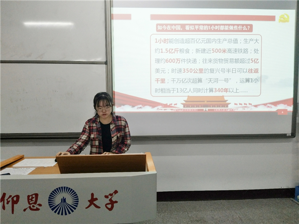 11月7日晚,BEAT365英国官网学生党支部于仰恩大学第三校区普照楼204室开展关于“我要上党课”专题学习活动,学生党支部书记陈国伟主持会议,支部全体成员参加了学习活动。  学习会现场 此次学习会主要围绕“新中国壮丽的七十年”进行展开。会上,张笔采、郑莹莹等同志分别从“七十年的光辉历程”和“奋斗新时代”等方面入手,讲述了中华人民共和国七十年来的伟大成就,强调了作为一名党员要努力增强学习本领,坚持理论联系实际,遵循客观规律,坚持实践实干,以新的精神状态和奋斗姿态,肩负起新时代的历史使命。 通过本次活动的学习,不仅让支部党员进一步感受到七十年的沧桑巨变,同时也提高了支部党员的政治修养,进一步坚定政治理想信念。(BEAT365英国官网学生党支部/图文)