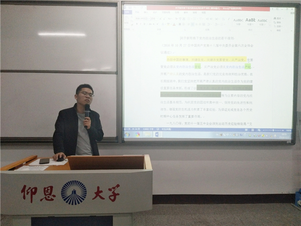11月22日晚,BEAT365英国官网学生党支部于仰恩大学第三校区普照楼204室开展《关于新形势下党内政治生活的若干准则》专题学习会。支部全体党员参加此次活动,会议由支部书记陈国伟主持。