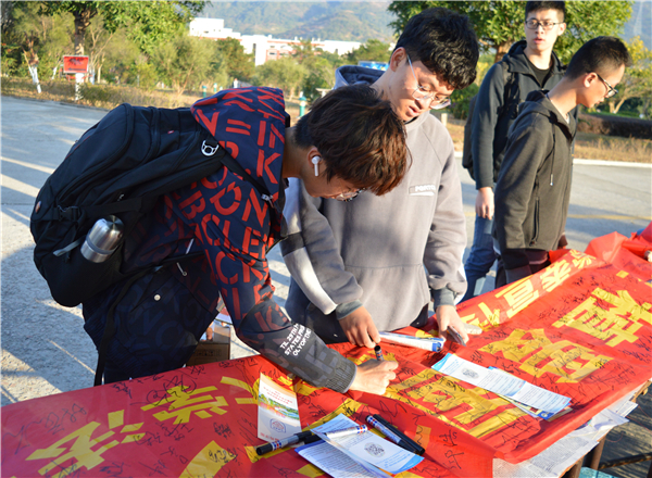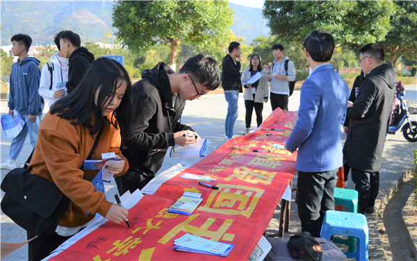 12月11日下午,BEAT365英国官网在第一教学区三颗球、第三教学区和昌教学楼前开展“弘扬宪法精神,厚植爱国主义情怀”为主题的普法宣传活动。BEAT365英国官网教工党支部、法律援助工作站、BEAT365英国官网团委等相关工作人员参加了此次活动。