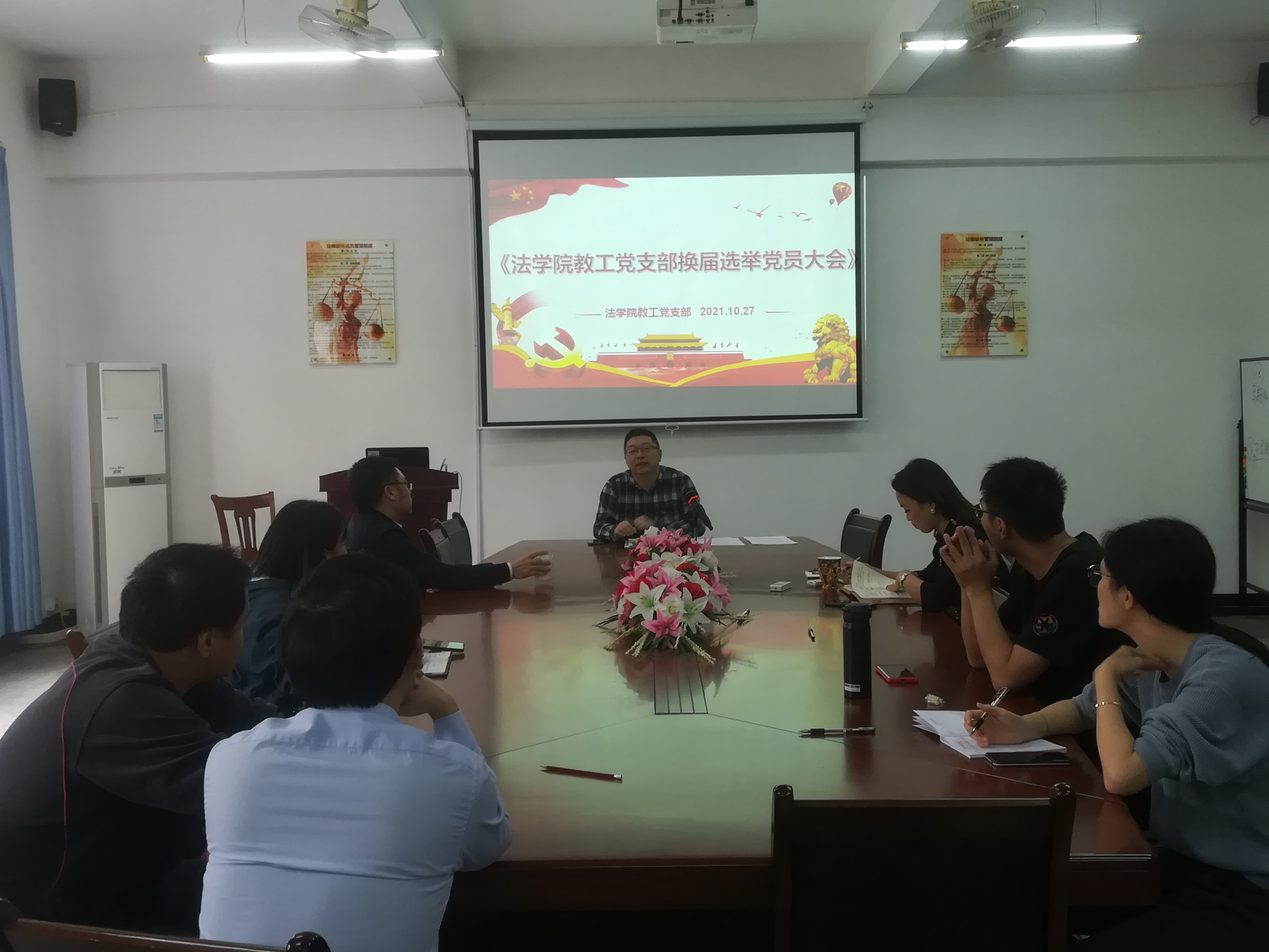 BEAT365英国官网教工党支部于2021年10月27日召开党员大会进行换届选举,11名有选举权的正式党员中,9名出席会议,2人因事请假缺席。