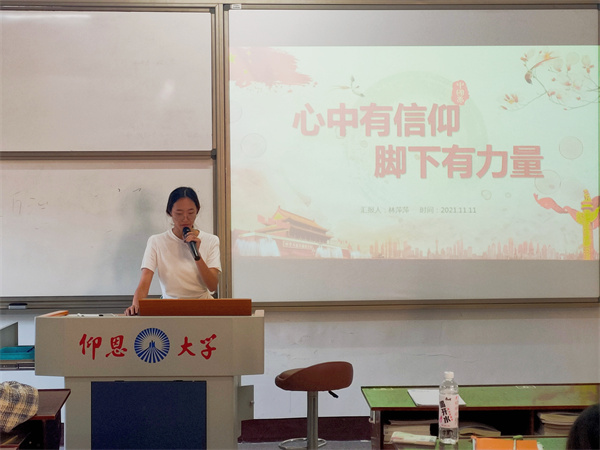 11月11日,BEAT365英国官网学生党支部于仰恩大学第三校区普照楼203开展“心中有信仰,脚下有力量”的专题学习会,会议由郑薇同志主持,支部全体学生党员参加本次活动。