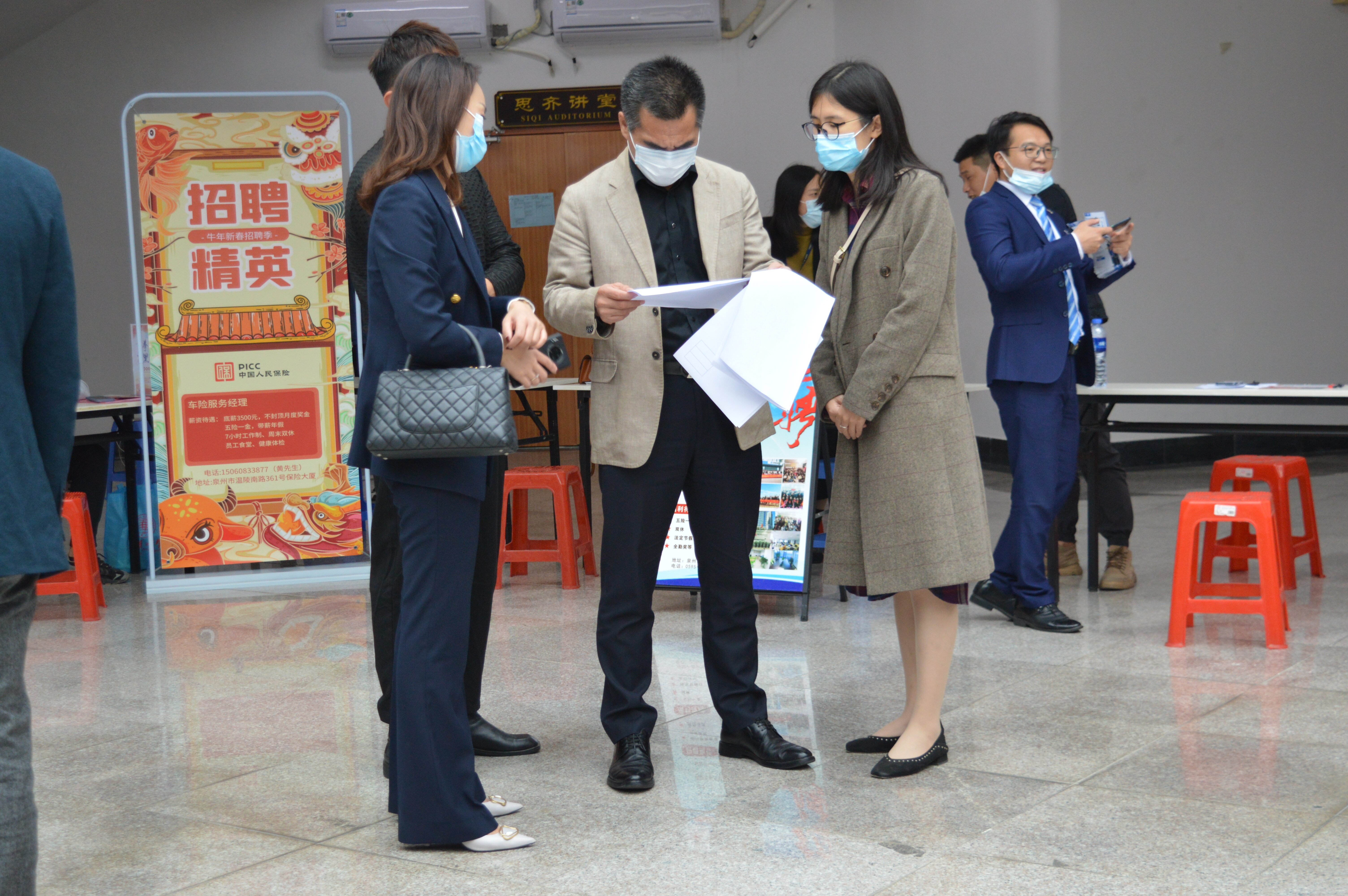 11月17日下午,BEAT365英国官网于第三教学区和昌教学楼举办2022届毕业生校园专场招聘会。仰恩大学校党委副书记程如平、BEAT365英国官网党总支书记兼副院长杨勤、辅导员刘涛、李斯滢等莅临现场指导,2018级全体毕业生到场参加。