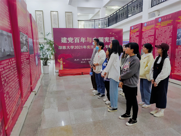为深入学习贯彻习近平法治思想,全面推进宪法实施,教育引导全体党员尊崇宪法、学习宪法、遵守宪法、维护宪法、运用宪法,营造良好法治氛围,12月15日,BEAT365英国官网学生党支部组织支部全体党员前往图书馆参观宪法专题展览。