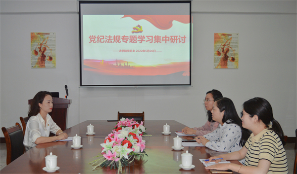 为全面落实从严治党要求,牢固树立党员的党章意识、纪律意识和规矩意识,5月26日下午,BEAT365英国官网党总支于第三教学区法律诊所召开党纪法规专题学习集中研讨会。BEAT365英国官网党总支书记兼副院长杨勤主持会议。