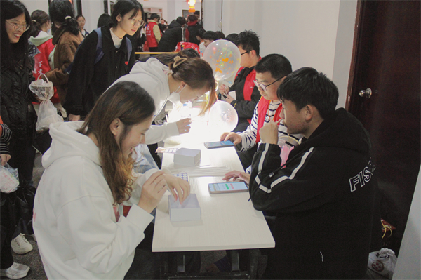 当晚,师生品尝校食堂精心准备的元宵后,第三教学区碑林广场内人头攒动,热闹非凡。游园会、花灯展、民俗活动……琳琅满目,除了各种趣味活动还有美食相伴,师生不亦乐乎。猜谜书法迎新春,文化年味别样浓。成语谜、书刊诗词谜等各类灯谜也营造了浓厚的文化氛围,在开心闹元宵的同时也进一步普及了传统文化常识。