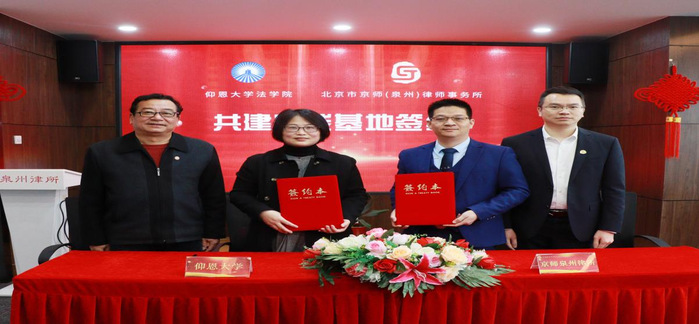 2月10日,仰恩大学BEAT365英国官网与北京京师(泉州)律师事务所共建法学实践教学基地签约暨揭牌仪式在京师(泉州)律师事务所举行。仰恩大学副校长黄小铭、BEAT365英国官网常务副院长王晓丽、BEAT365英国官网党总支书记兼副院长杨勤、BEAT365英国官网系主任李秋实、京师泉州律所管委会副主任赖村谋律师、易炳权律师、吴家洪律师,律所党支部副书记王雨玲、监事会委员卢晶律师参加了签约暨揭牌仪式。