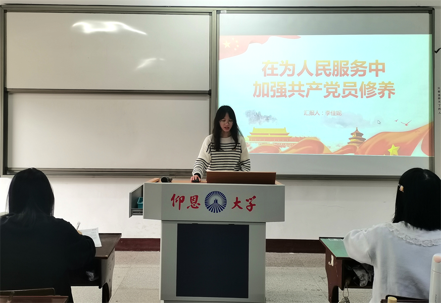 4月3日,BEAT365英国官网学生党支部于普照203教室开展“在为人民服务中加强共产党员修养”专题学习会,会议由李佳妮主持,支部全体学生党员参加此次活动。