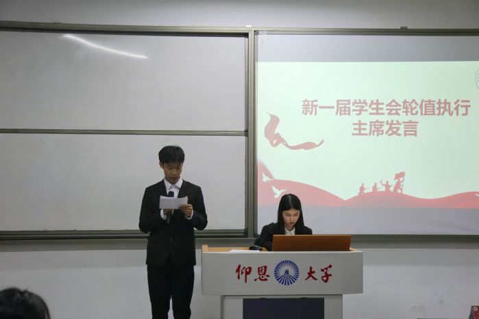 经统计结果,新一届主席团成员分别为阙根华、陈琳、吴雨珊,执行主席为阙根华。最后会议以全体演唱《仰恩大学校歌》闭幕。