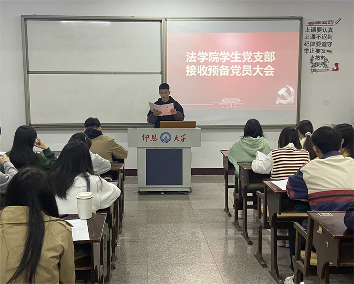 会议伊始,吴姗姗介绍发展党员工作程序。随后,九名发展对象依次发表入党志愿后,入党介绍人对同志们在思想、学习和工作上的表现进行介绍,并发表是否同意其入党的意见。经过无记名投票与会党员一致认为,卓洁萍等九名发展对象已基本具备党员条件,同意接收卓洁萍等九名同志为中共预备党员。卓洁萍等九名同志一致表示,将坚守自身入党的信念,在今后的学习生活中以党员标准严格要求自己,为党的事业不断奋斗。会议最后一项,九名预备党员面向党旗庄严宣誓,以有力的誓词表达奉献党组织的坚定信念。