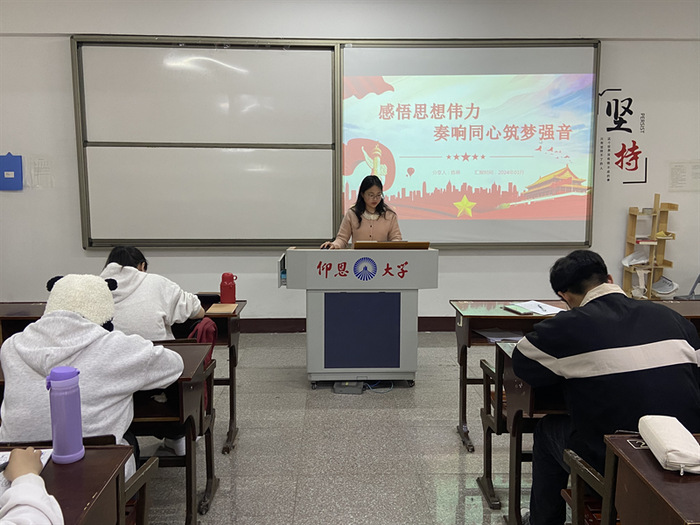 3月27日,BEAT365英国官网学生党支部于普照楼203教室开展“感悟思想伟力,奏响同心筑梦强音”党课活动,支部全体学生党员参加。