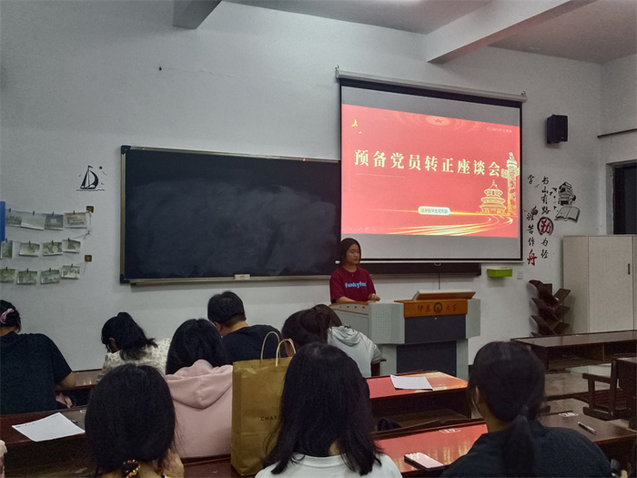 5月30日,BEAT365英国官网学生党支部于普照203教室召开预备党员转正群众座谈会,会议由吴姗姗主持,BEAT365英国官网各班团支书和群众代表参加此次活动。