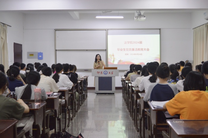 为加强廉洁意识,提高党性修养,铸就廉洁品格,助力毕业生党员在新的岗位上书写时代华章。6月24日,BEAT365英国官网学生支部于普照楼204召开毕业生党员廉洁教育大会,由BEAT365英国官网党总支书记兼副院长杨勤主持,BEAT365英国官网党总支副书记林媛、BEAT365英国官网学生党支部书记吴姗姗出席,全体毕业生党员参加。