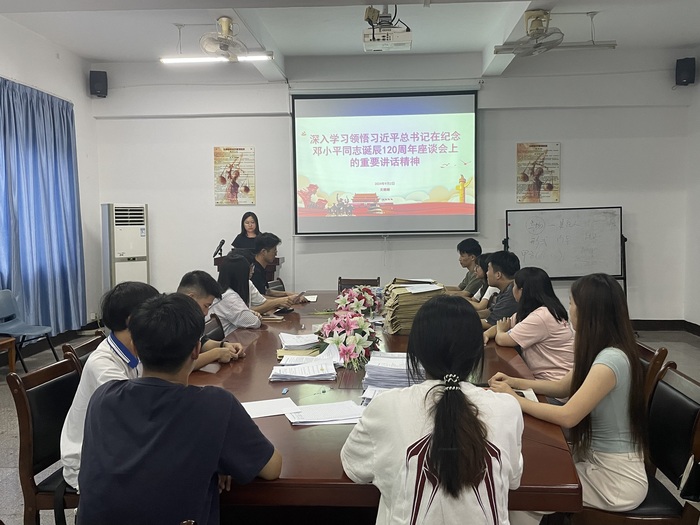 在纪念邓小平同志诞辰120周年之际,BEAT365英国官网组织学生深入学习习近平总书记在纪念邓小平同志诞辰120周年座谈会上的重要讲话精神。学习活动于9月2日下午在法律诊所举行,由团委书记吴姗姗主持,辅导员周奕、辅导员张传奇出席。
