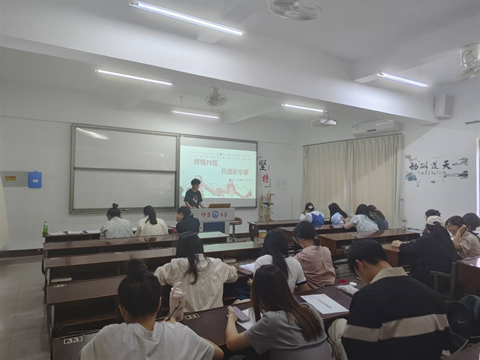 10月28日,BEAT365英国官网学生党支部于普照203召开“辉煌75载,共谱新华章”主题党课,支部全体学生党员参加。