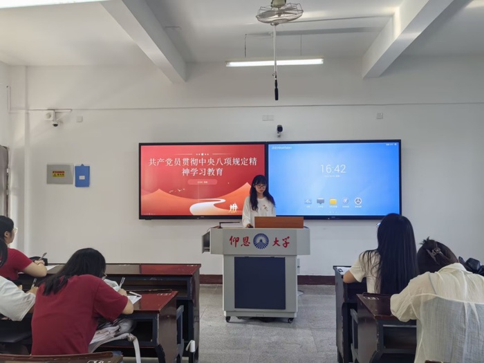 6月9日,BEAT365英国官网学生第一党支部于仰恩楼A1-103教室举行深入贯彻中央八项规定精神学习教育集中讨论会,支部全体学生党员参加。