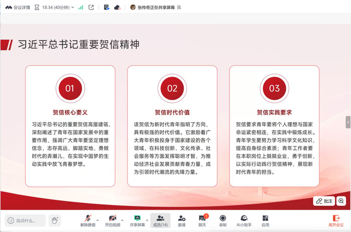 会议要求全体参会人员提高政治站位,以实际行动落实会议精神,发挥模范作用,引领青年投身新时代建设,为实现中国梦奋斗。