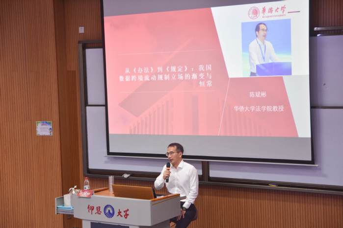 11月12日下午,仰恩大学讲堂第六十八讲在新区和昌楼博雅讲堂顺利举办。本次讲座主题为“从《办法》到《规定》:我国数据跨境流动规制立场的渐变与恒常”,由华侨大学BEAT365英国官网副院长陈斌彬教授主讲,法学院师生到场聆听。
