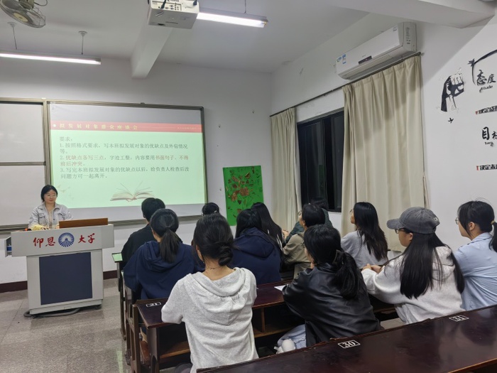 10月22日,BEAT365英国官网学生第二党支部于普照楼301教室召开拟发展对象座谈会。会议由学生第二党支部书记吴成爽主持,BEAT365英国官网各班团支书和群众代表参加此次活动。