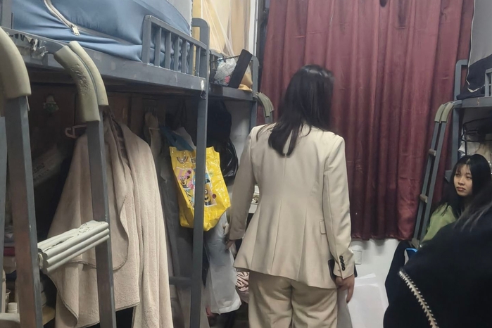 走访过程中,杨勤书记仔细查看了各宿舍的环境、设施配置及卫生状况,并与同学们亲切交流,详细了解同学们的学习状态、课程进度等,鼓励同学们珍惜校园时光,主动了解行业前景,提前做好规划。同时也关注同学们的课余生活,认真倾听大家对校园生活的感受,还叮嘱同学们在专注学业的同时,要注重身心健康,保持规律作息。交流过程中,同学们也纷纷敞开心扉分享起自己在学习中的困惑与收获,现场气氛热烈而融洽。最后,杨勤书记鼓励大家平日里要相互包容、互帮互助,让宿舍成为像家一样的温暖港湾。