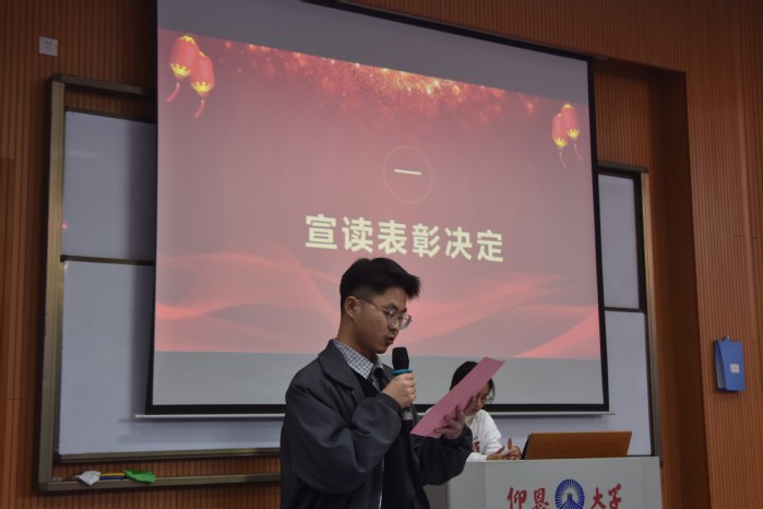 12月22日下午,仰恩大学BEAT365英国官网于新区和昌楼博雅讲堂召开第三十四届校运会表彰大会。BEAT365英国官网党总支书记兼副院长杨勤、党总支副书记林媛、团委书记吴姗姗、学生会指导老师张传奇、网络工作室负责人周奕、学生第一党支部副书记朱晓琳、学务秘书汪明出席会议,24、25级全体学生及受表彰人员共同参与。
