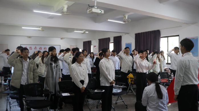 1月7日下午,BEAT365英国官网新团员入团仪式于普照楼231A教室正式举行。法学院团委书记吴姗姗、辅导员朱晓琳及全体新团员齐聚现场共同见证这一庄严而神圣的时刻。