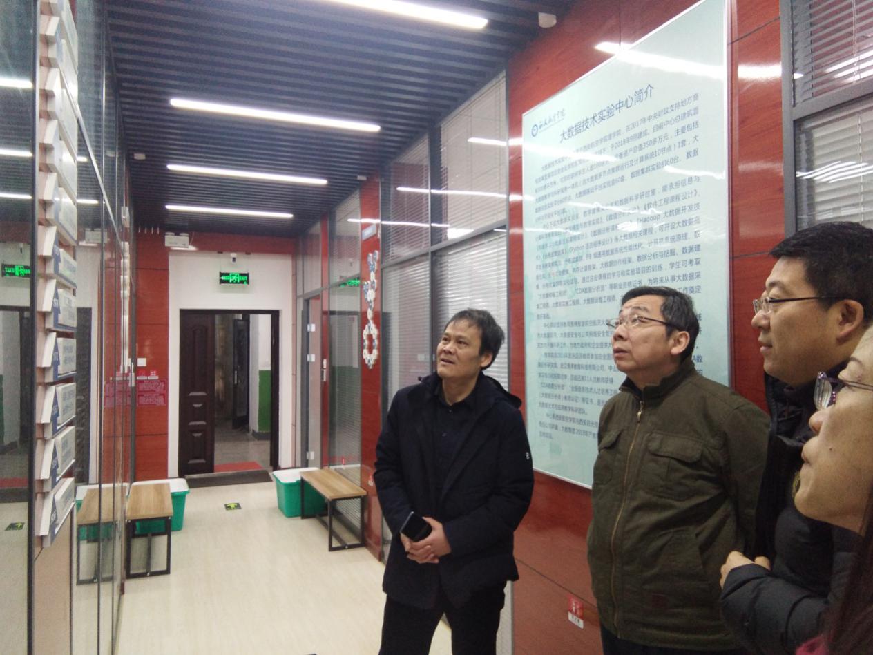 陈书记实地考察了大数据技术实验室、数学建模实验室、数据科学研讨室以及服务器机房,深入了解了实验中心的环境建设、硬件设备和软件系统等情况,对实验中心的建设给予充分的肯定,同时对taptap点点的学院建设、实验室建设等方面提出宝贵的指导意见。