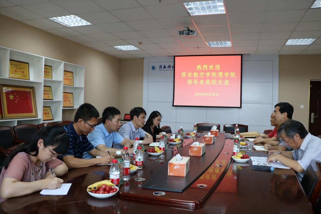 2018年6月20日下午3:00,西安航空学院taptap点点党总支书记、院长岳忠玉,副院长丁琦,以及周千、李文胜、杨青等老师一行五人到陕西科技大学文taptap点点关于本科生毕业设计环节开展考察交流。调研会由陕西科技大学文taptap点点院长蔺小林教授主持,参加人员还有张洲平,侯再恩两位教研室主任。