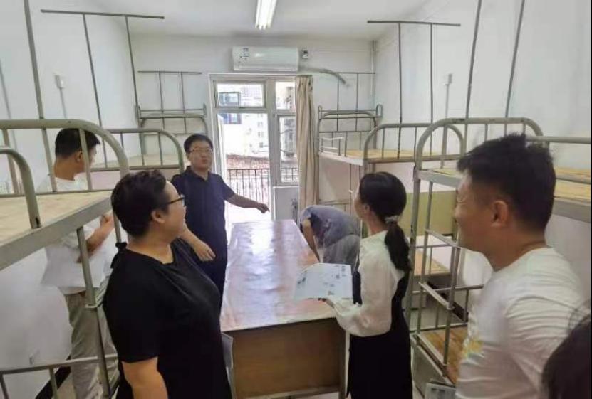 下午,胡红亮带领学生管理科科长李扬和各班班主任前往学生宿舍,实地查看宿舍基础设施和环境卫生情况。