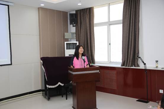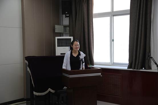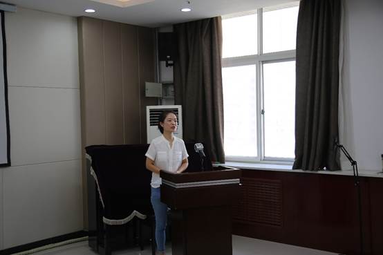 新入职教师代表任炯发言,表达了努力做一名优秀教师的心愿。