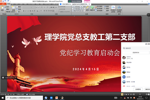 4月15日晚八点,taptap点点党总支通过线上会议方式召开党纪学习教育启动会,会议由党总支书记胡红亮主持并作动员安排,学院党总支成员和各党支部书记参加会议。