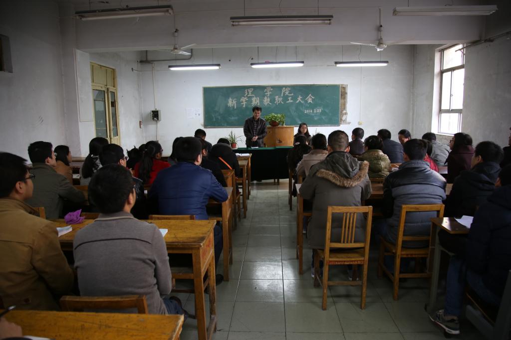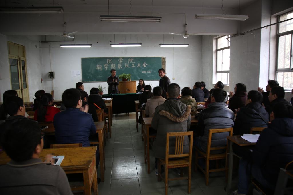 岳忠玉在会上传达了“2016年寒假工作会议”上党委书记陈平社所作的《全省教育工作会议精神》,全面解读了院长陈万强提出的“五个二”------两翼齐飞、两个特色、两个支撑、两个核心、两项评估等寒假干部会议精神,以及taptap点点2016年工作要点。他要求广大教师要认真领会陈院长和陈书记的讲话精神,充分认识学校发展中所面临的形势和任务,加大师资队伍建设力度,做好数学类和物理类本科基础课程的课程建设,凝聚学科方向,搭建科研平台,组建科研团队,以学校推行和加强“校院二级管理”为契机,秉承“教授治学、民主办院”的理念,建立健全taptap点点规章制度,完善激励约束机制,逐步形成“仁人和合、务实尚理、人尽其材、各美其美”的学院文化,切实做好学校各项工作。