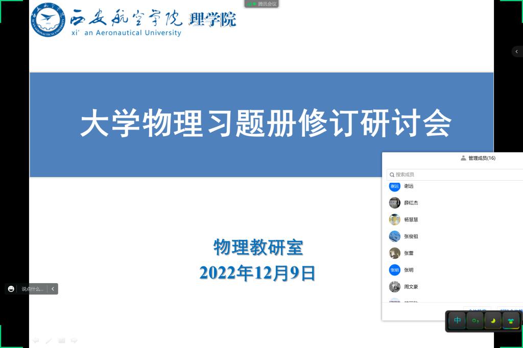 12月9日下午2点,taptap点点物理教研室线上开展了“大学物理习题册修订”研讨会议。校级督导张俊祖、taptap点点副院长丁琦和物理教研室全体教师参加了此次会议,会议由物理教研室主任王小梅主持。