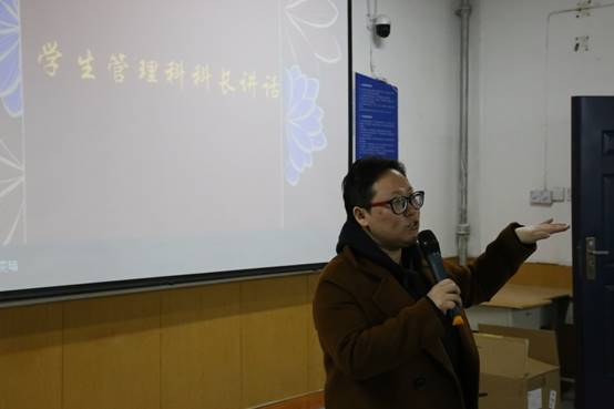 首先,李扬从学风建设、考研就业、校园活动等方面给同学们提出要求,强调同学们要提早为未来做规划,明确未来发展方向;抓紧在校学习时间,为英语四六级做准备;加强体育锻炼,增强自身体魄,在之后的运动会中展现学院风貌;鼓励同学们加强自律,做好时间管理,找定目标,持之以恒,积极参加学科竞赛。
