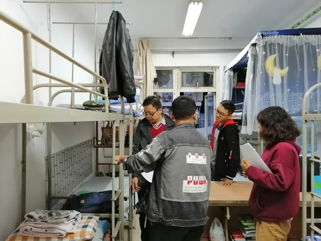 2019年10月9日,为了保证学生们有一个良好的生活环境,信息计算191班潘灵刚班主任带领本班全体班干部到宿舍进行了卫生检查。