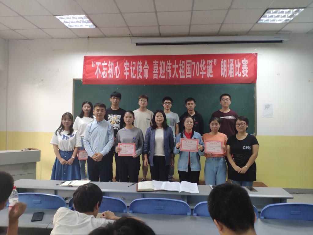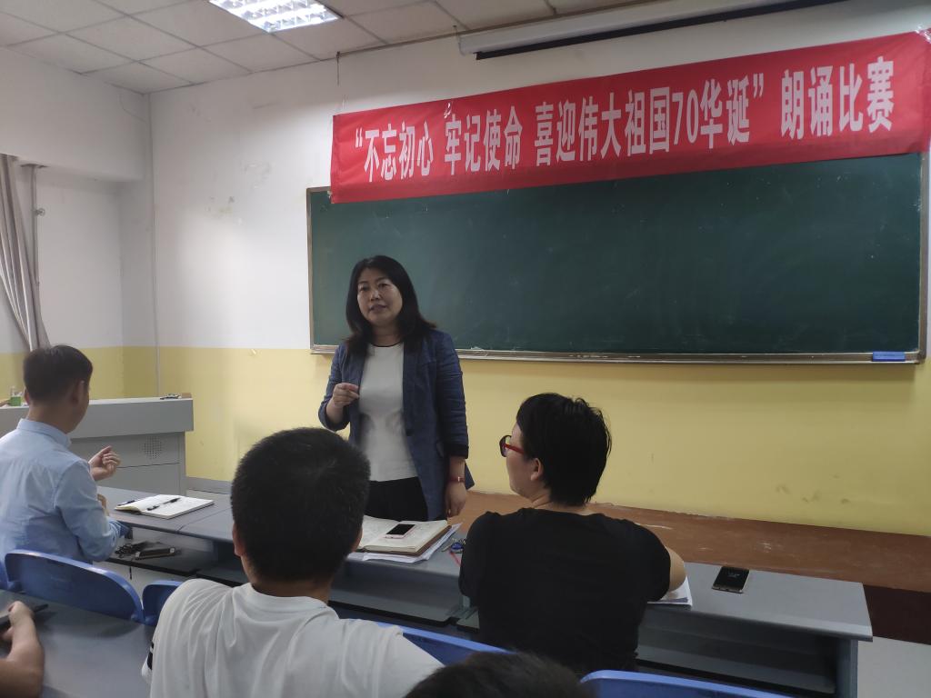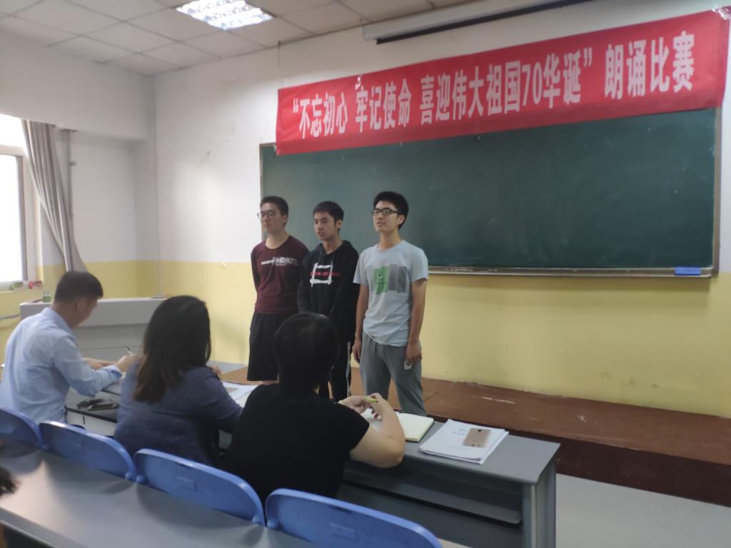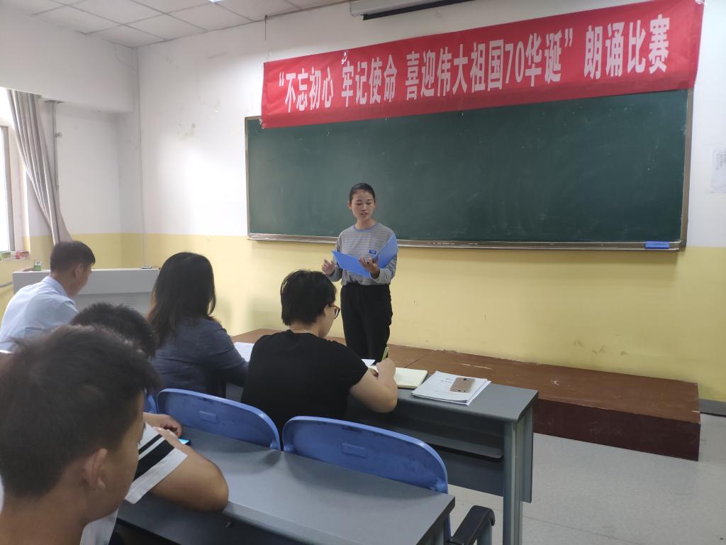 为庆祝中华人民共和国成立70周年,加强对学生爱国主义教育,2019年9月26号至29号,taptap点点在南楼408举办了“不忘初心,牢记使命,喜迎伟大祖国70华诞”主题朗诵大赛。taptap点点各班级均派出学生代表参加,共12支代表队参加了比赛。朗诵大赛评委为taptap点点党总支书记李小光、学生管理科科长李扬,团总支书记杨陈东及学生会部分干部。观众为所有大一新生。