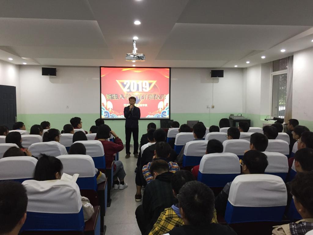 新生入学教育是整个大学阶段教育的起点,为了新生更好地适应大学生活,了解学校、专业、校纪校规和校纪校规,明确自己的奋斗目标,taptap点点于2019年9月19日上午举行了2019级新生入学教育开班仪式。taptap点点院长岳忠玉、党总支书记李小光、副院长丁琦、学生管理科科长李扬、团总支书记杨陈东和2019级全体新生参加了开班仪式。开班仪式由李扬主持。