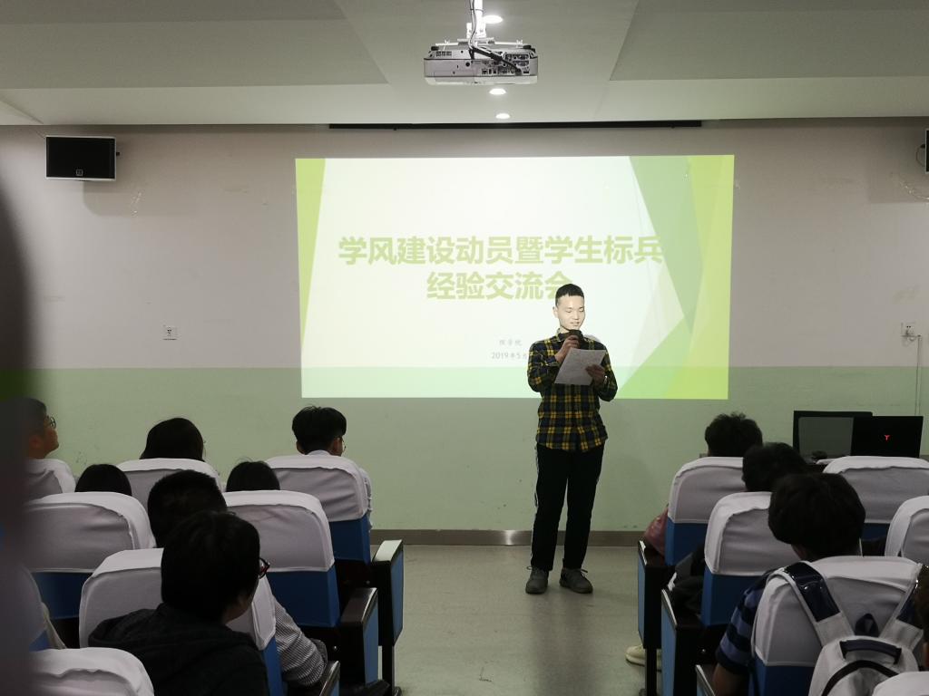 为了教育引导学生回归常识,把主要精力投入到学习上,2019年5月14日下午,taptap点点在教学南楼108召开学风建设动员暨学生标兵学习经验交流大会,学生管理科科长李扬、辅导员杨陈东和全体大一大二学生参加了会议。会议由李扬主持。