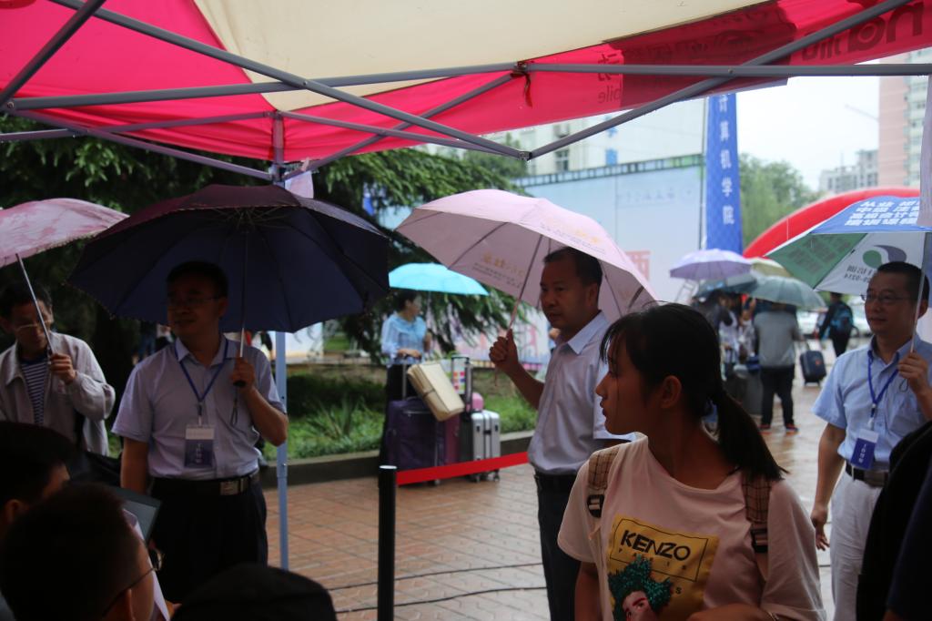 9月5日早晨,taptap点点迎接新生工作在西安航空学院西门正式拉开帷幕,虽然天公不作美,连绵的阴雨给新生以及家长带来了一些麻烦,但是由于迎新工作准备充分、组织得力,迎新工作进行得井然有序。
