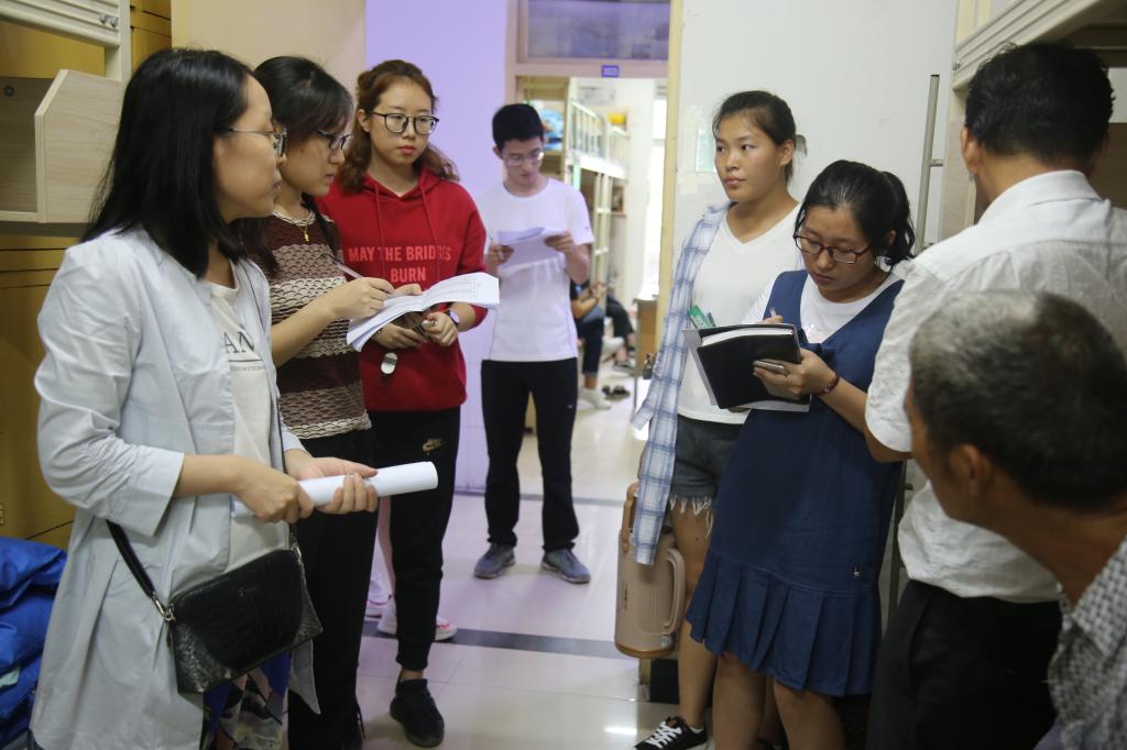 9月5日下午17:00,辅导员张小妹,三位新生班班主任一同走访了新生宿舍,慰问家长和新同学。