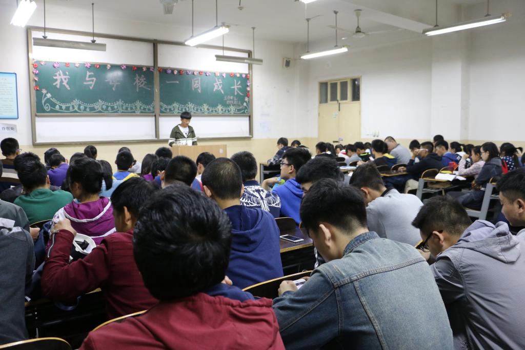 晚上七点,同学们一同聚集在主教学楼0502教室,taptap点点团总支副书记朱宗贵发表了以“我与母校一同成长”为主题的演讲拉开了班会的序幕,班会期间各位同学踊跃发言,积极参与,争相配合,展示自己的才艺,在欢声笑语中抒发自己对母校的爱,表达对母校的尊重。最后在团总支副书记朱宗贵的总结发言下,这次班会划上了圆满的句号。