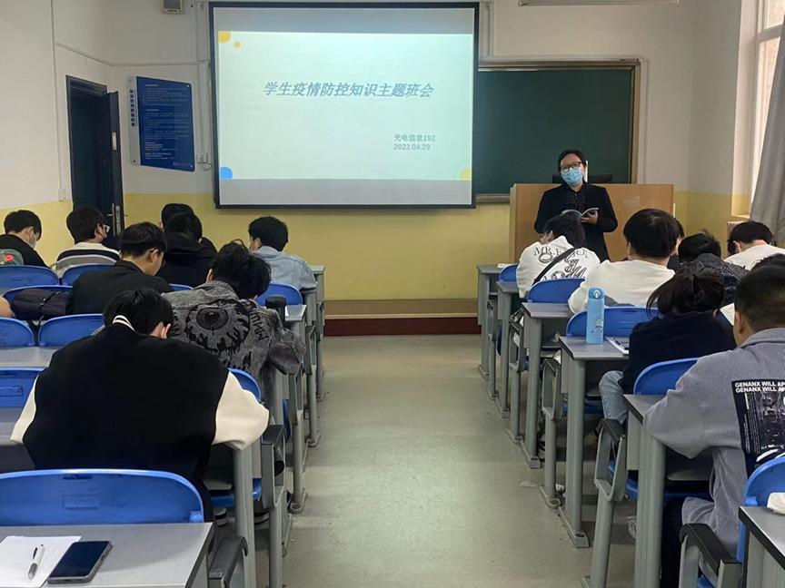 各班主任向学生们详细介绍了目前疫情防控的局势、校园疫情防控最新要求、防控“三不”等事宜。带领大家学习了《学生疫情防控知识手册》全册,为同学们宣讲了疫情防控方法和技巧。同时介绍了五一假期学校放假安排,了解了学生的需求。倡导学生遵守党纪国法,不参与赌博、封建迷信及其他违法乱纪活动。告诫学生要提高警惕,注意人身财产安全,防止上当受骗,严禁违规用电、乱拉电线、使用劣质插线板。针对当下疫情现状,班主任对学生进行了心理上的辅导,为学生排忧解难,解决了学生的一些心理需求。